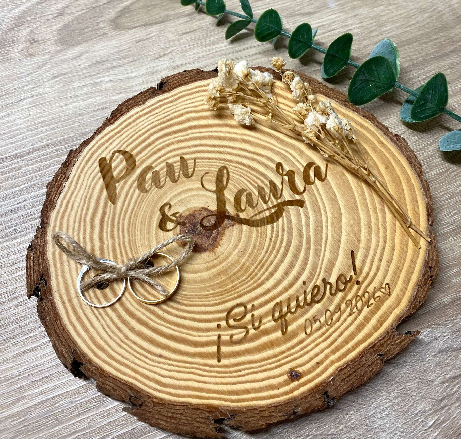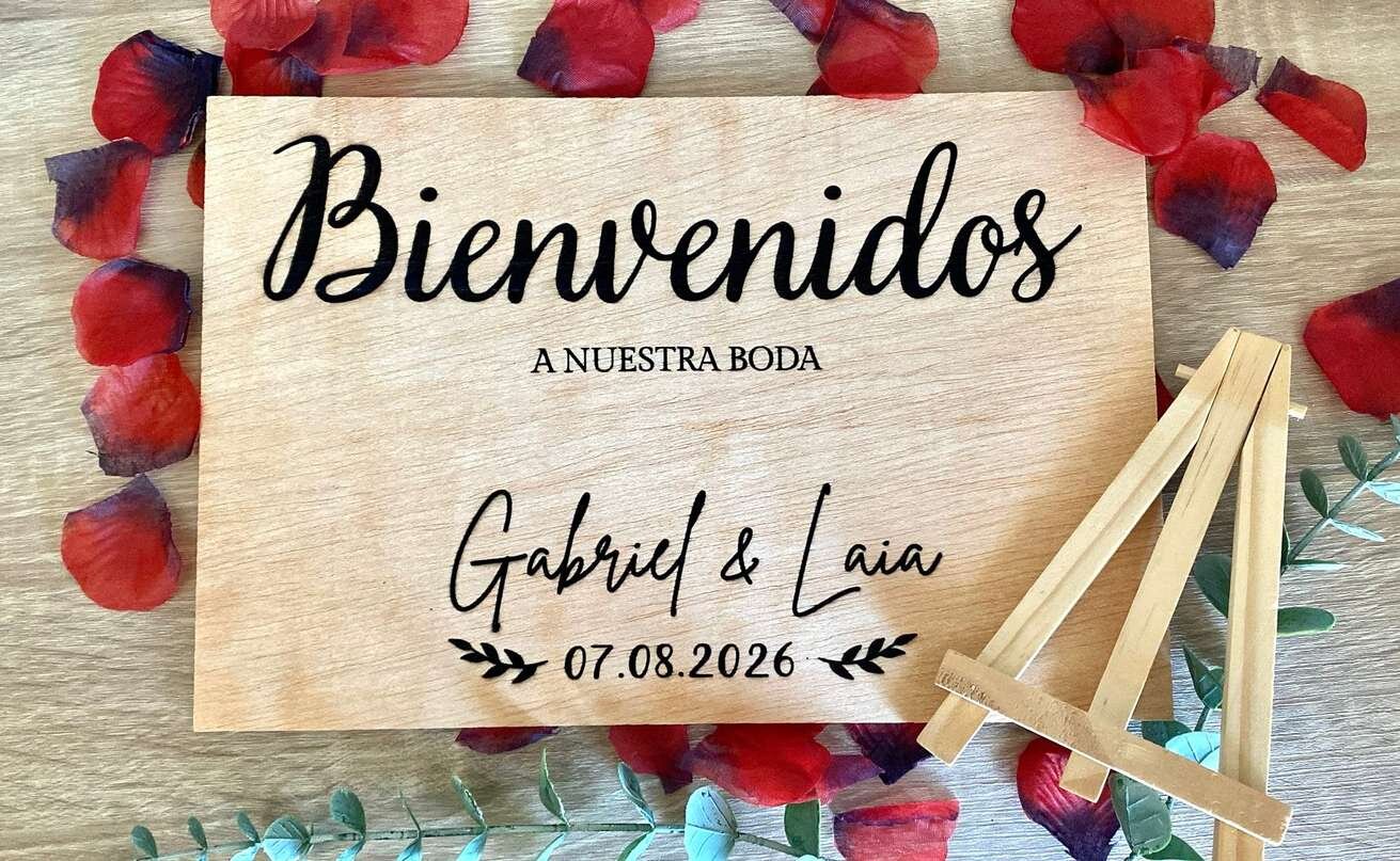 Grabado láser y vinilo sobre madera natural. Bodas, bautizos y comuniones desde Tarragona.